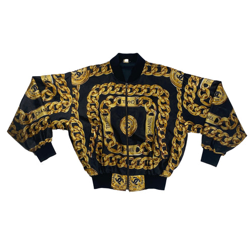 RARE VINTAGE CHANEL SILK BOMBER JACKET BLACK